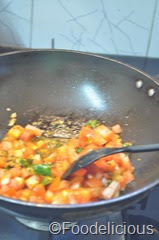 - Add tomatoes , salt and sauté.