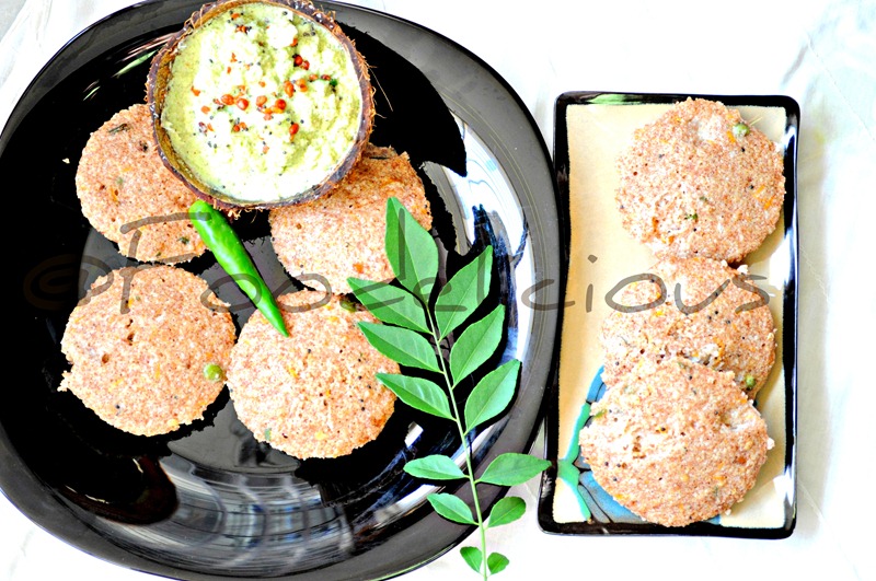 I made this instant Idli using daliya (broken wheat), Oats and Ragi flour. All the three ingredients are extremely nutritious. The Idli was a super hit preparation and S has already asked me to make again. The best part with this preparation is that, one can make the dry mix for Idli in advance and then use it when required. It’s an excellent preparation for growing kids and I’m going to make this more frequently. Thanks Vidya and Usha for the recipe.
