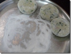 Coat the patty on all sides with sago flour.