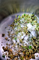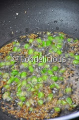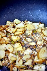 Add green chillies and sauté for few seconds, so that the flavour gets infused in the oil.