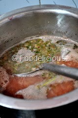 To the ground mix add the kokam juice, salt to taste and about 2-3cups water.