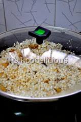 Add the sago mixture and mix thoroughly. Cook covered for 5-8mins or till done.