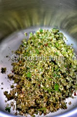 Grind the roasted peanuts. Mix it with soaked sago. Also mix in sugar and salt to taste.